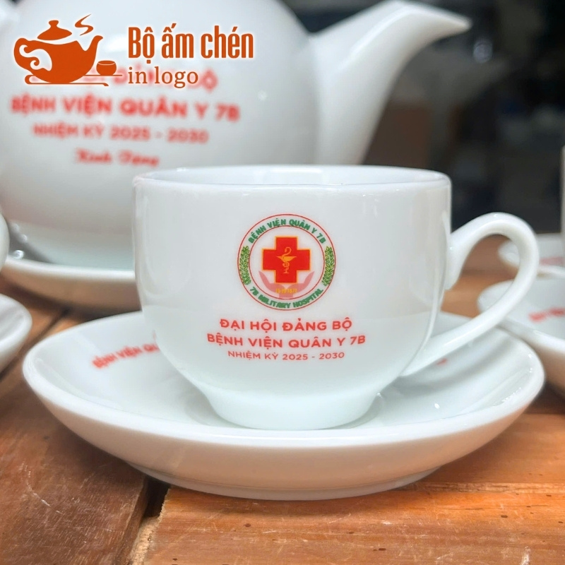 Các bộ trà sứ trắng in logo có giá thành phải chăng, phù hợp với đơn đặt hàng quy mô lớn