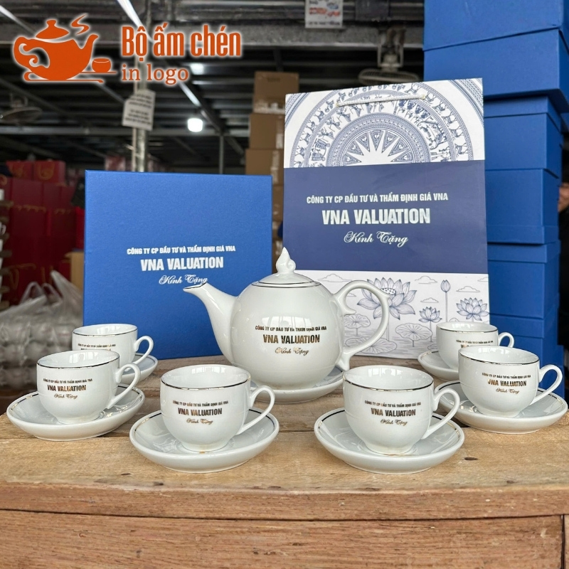 Ấm chén in logo là món quà tri ân thiết thực, giúp doanh nghiệp ghi nhận cống hiến, gia tăng sự gắn kết và xây dựng văn hóa nội bộ vững mạnh. Một bộ trà chỉn chu không chỉ là vật phẩm hữu ích cho nhân viên sử dụng hàng ngày mà còn là cầu nối tinh tế, thể hiện sự quan tâm sâu sắc của ban lãnh đạo.