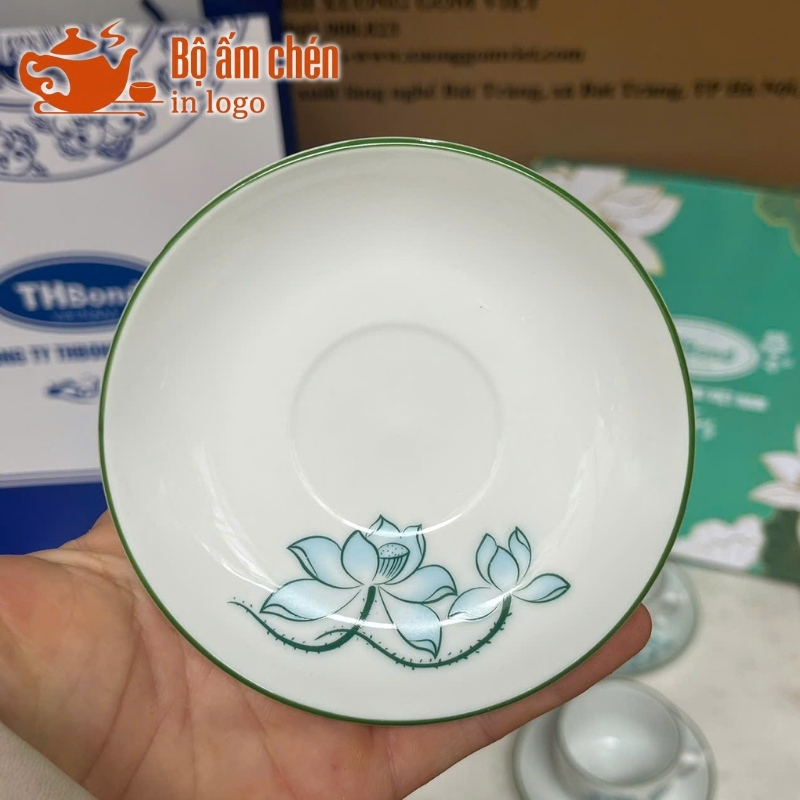 Đồng thời, nền sứ trắng giúp logo thương hiệu hiển thị sắc nét, tăng cường hiệu quả quảng bá thương hiệu tự nhiên thông qua tần suất sử dụng trà hằng ngày của người nhận.