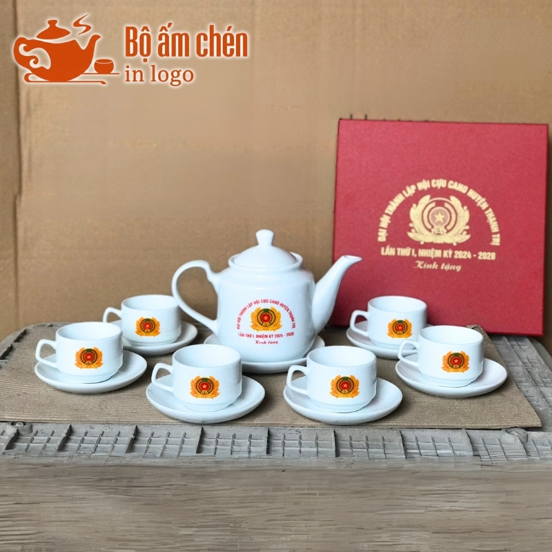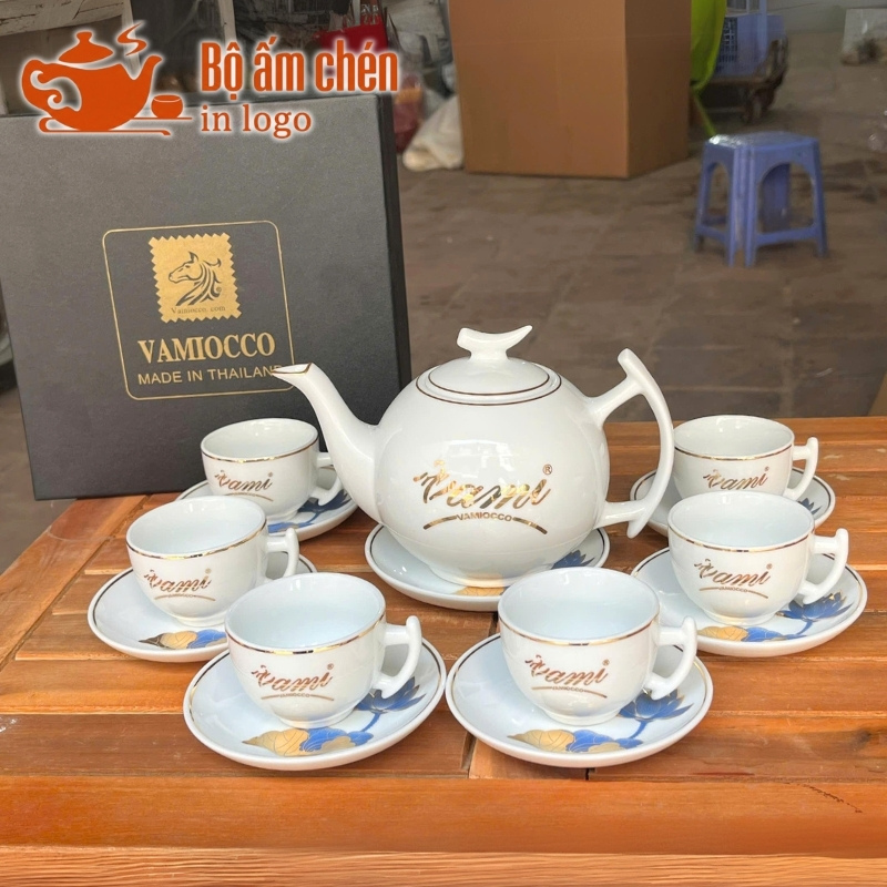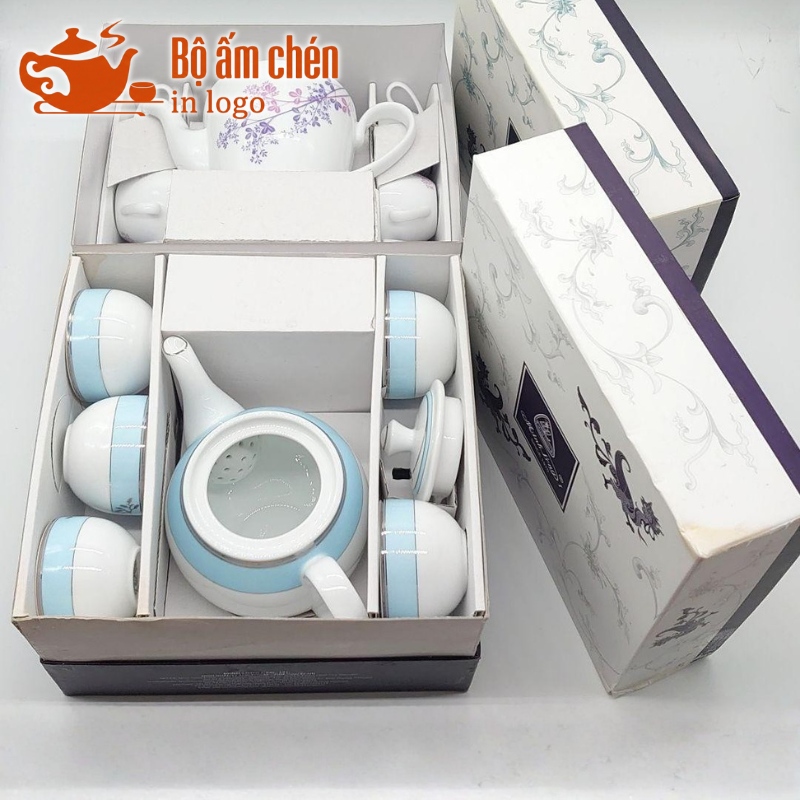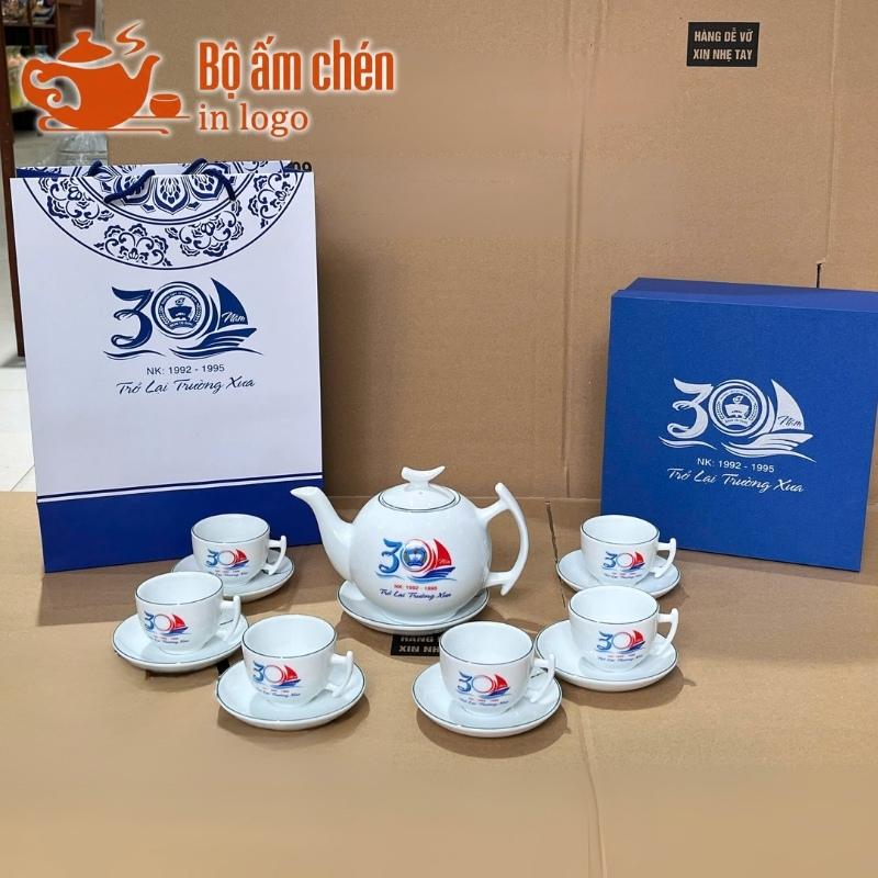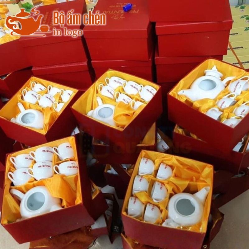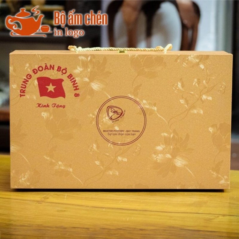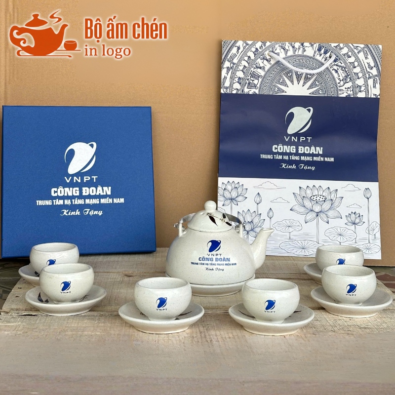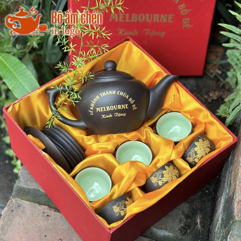 Tổng Kho Ấm Chén Quà Tặng cung cấp trọn bộ ấm chén in logo kèm hộp quà đồng bộ, chuyên nghiệp