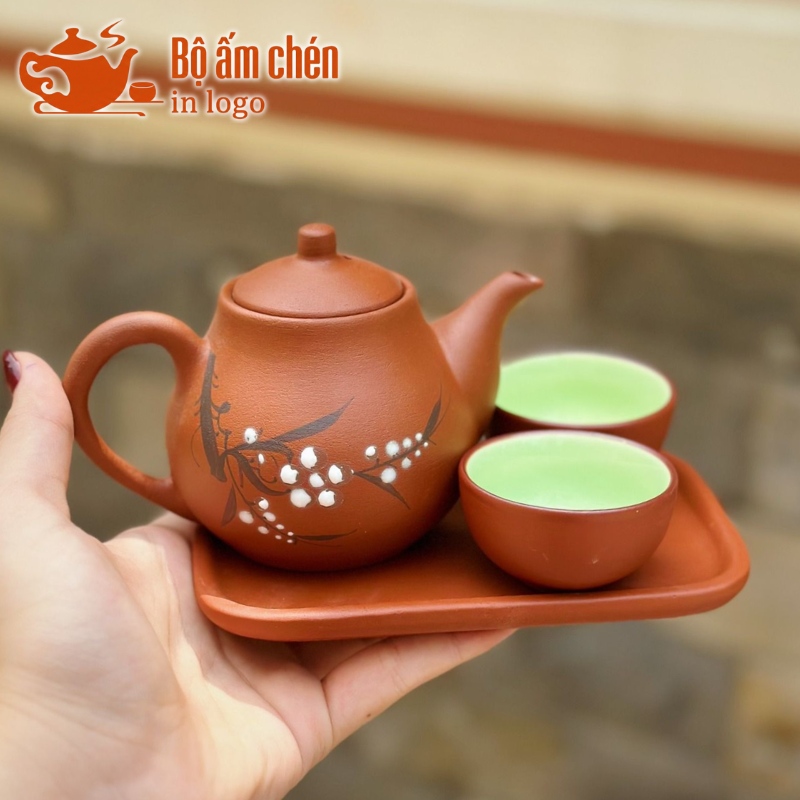 Doanh nghiệp có thể yêu cầu in logo ở cả 2 mặt của ấm tách trà mà không lo cấn họa tiết