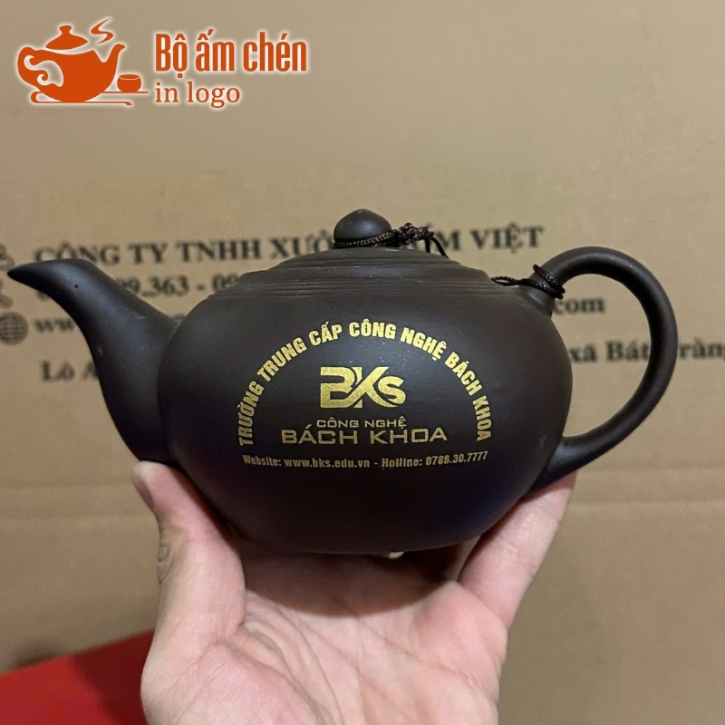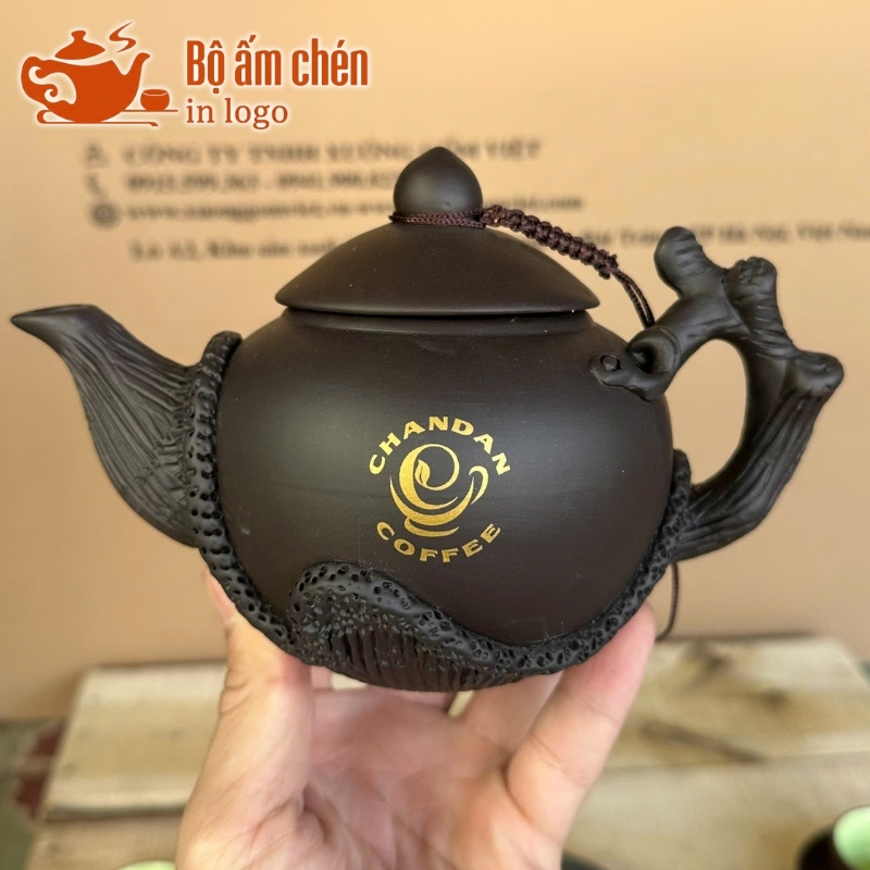 Kiểu dáng ấm trà tối giản càng làm nổi bật logo thương hiệu được in ấn